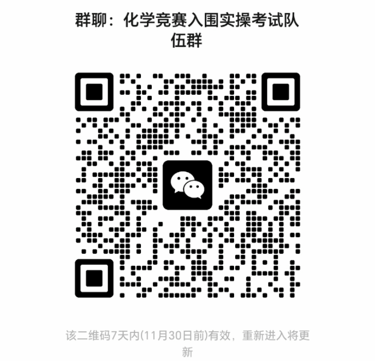 请入围实操考试的队伍,扫二维码入群,每队两名参赛队员都携带身份证、学生证入场。实验操作考试时间:11月30日8:30-12:00。各参赛队7:50到理学院317报到并抽取参赛号,按照参赛要求进行考试。